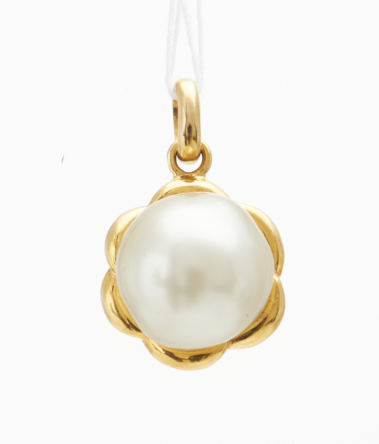 A PEARL PENDANT IN 18CT GOLD, THE ROUND PEARL MEASURING 15.2MM, LENGTH 26MM