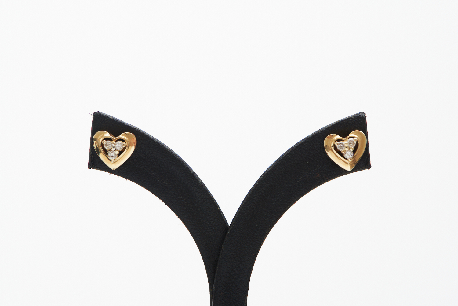 A PAIR OF DIAMOND EARRINGS IN 14CT GOLD OF HEART SHAPE DESIGN, TO POST AND BUTTERFLY FITTINGS, 3.2GMS