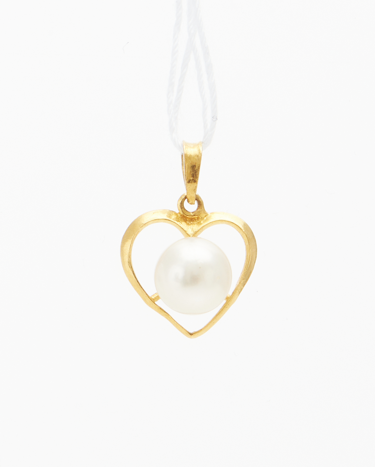 A CULTURED PEARL PENDANT IN 21CT GOLD OF HEART SHAPE DESIGN, 1.3GMS