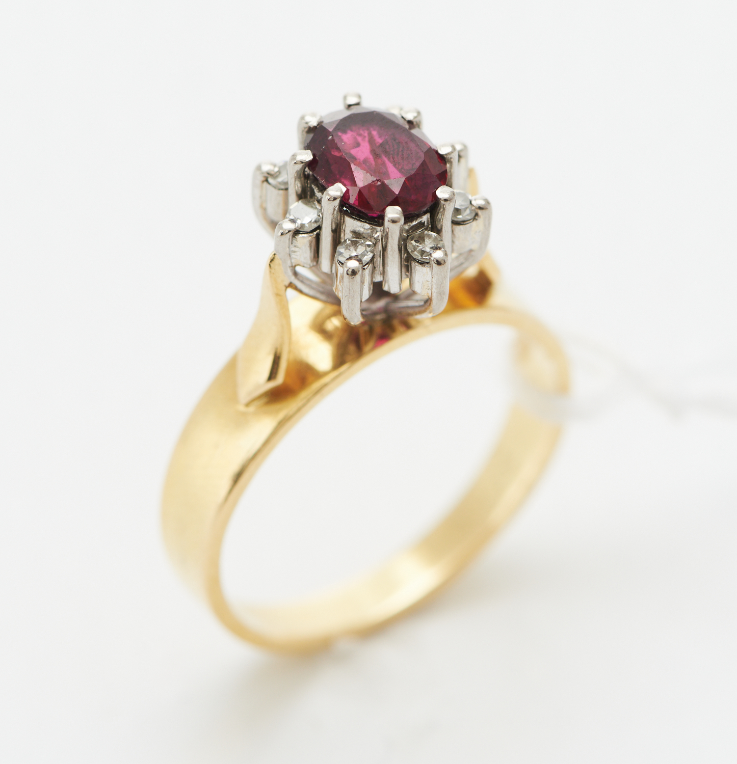 A RUBY AND DIAMOND CLUSTER RING IN 18CT GOLD, SIZE M-N, 4.6GMS