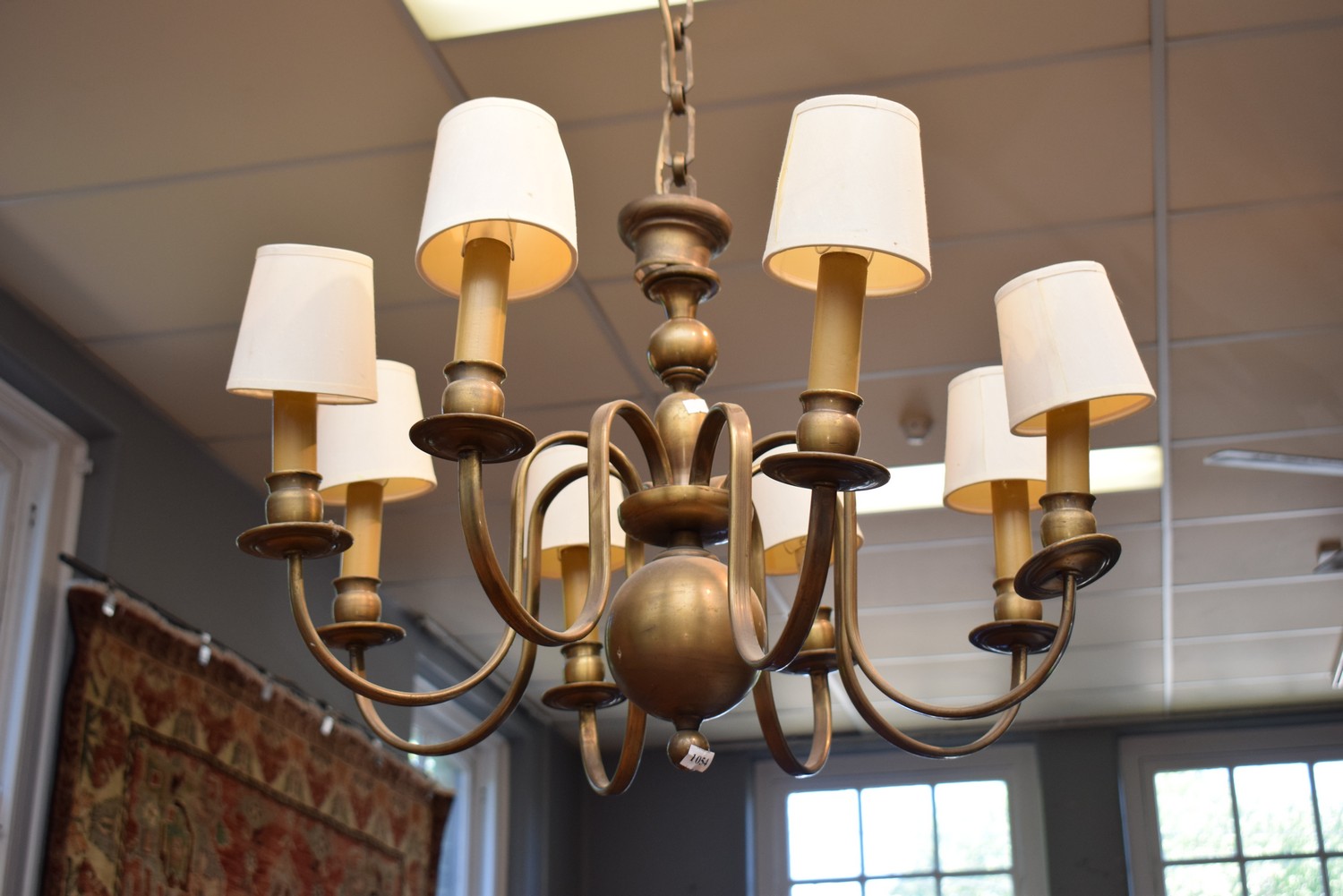 A DUTCH EIGHT BRANCH BRASS LIGHT FITTING (47H X 70W CM) (LEONARD JOEL DELIVERY SIZE: MEDIUM)