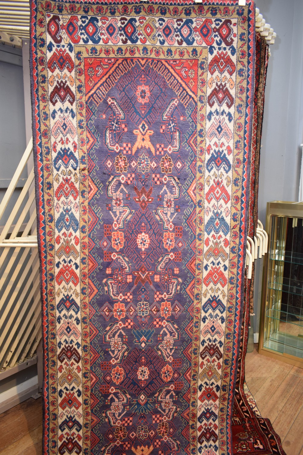 A RARE TRIBAL BAKHTIAR SHALAMZAR HALL RUNNER, 100% WOOL. NATURAL DYES. SOLID PILE. STURDY & HARD-WEARING. HAND-KNOTTED TRIBAL BAKHTIARI WEAVE & DESIGN OF REPEATING FLLRAL MEDALLIONS & CORNER MEDALLIONS IN A FIELD OF VIBRANT-TONED FLORAL MOTIFS. GALLERY EXHIBITED. IN EXCELLENT CONDITION. CERTIFICATE OF AUTHENTICITY INCLUDED. SIZE: 303X111 ORIGIN: PERSIA - RRP: $2,200