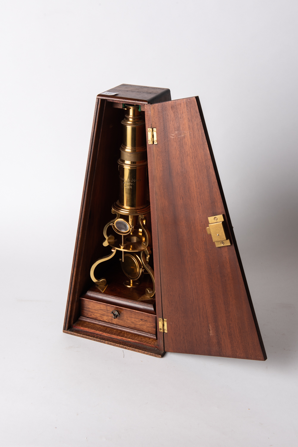 A BURKE & JONES CULPEPPER TYPE MICROSCOPE, WITHIN A HARDWOOD CASE, 41.5 CM HIGH, LEONARD JOEL LOCAL DELIVERY SIZE: SMALL