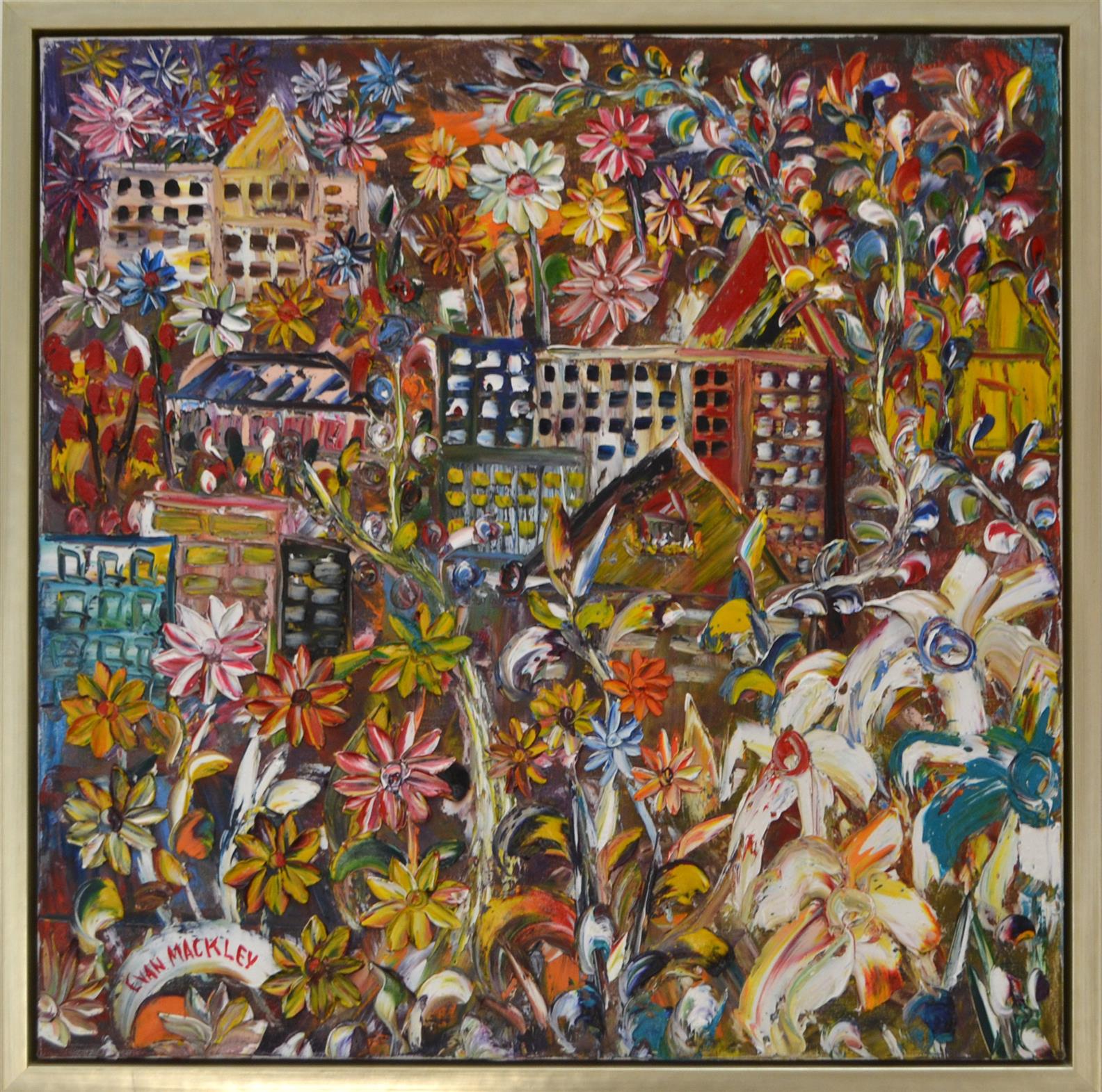 EVAN MACKLEY, FLOWER SCENE, OIL ON CANVAS, 76 X 75.5CM, FRAME SIZE: 81.5 X 81.5CM, CONDITION: VERY GOOD, WELL FRAMED. LEONARD JOEL DELIVERY SIZE: MEDIUM