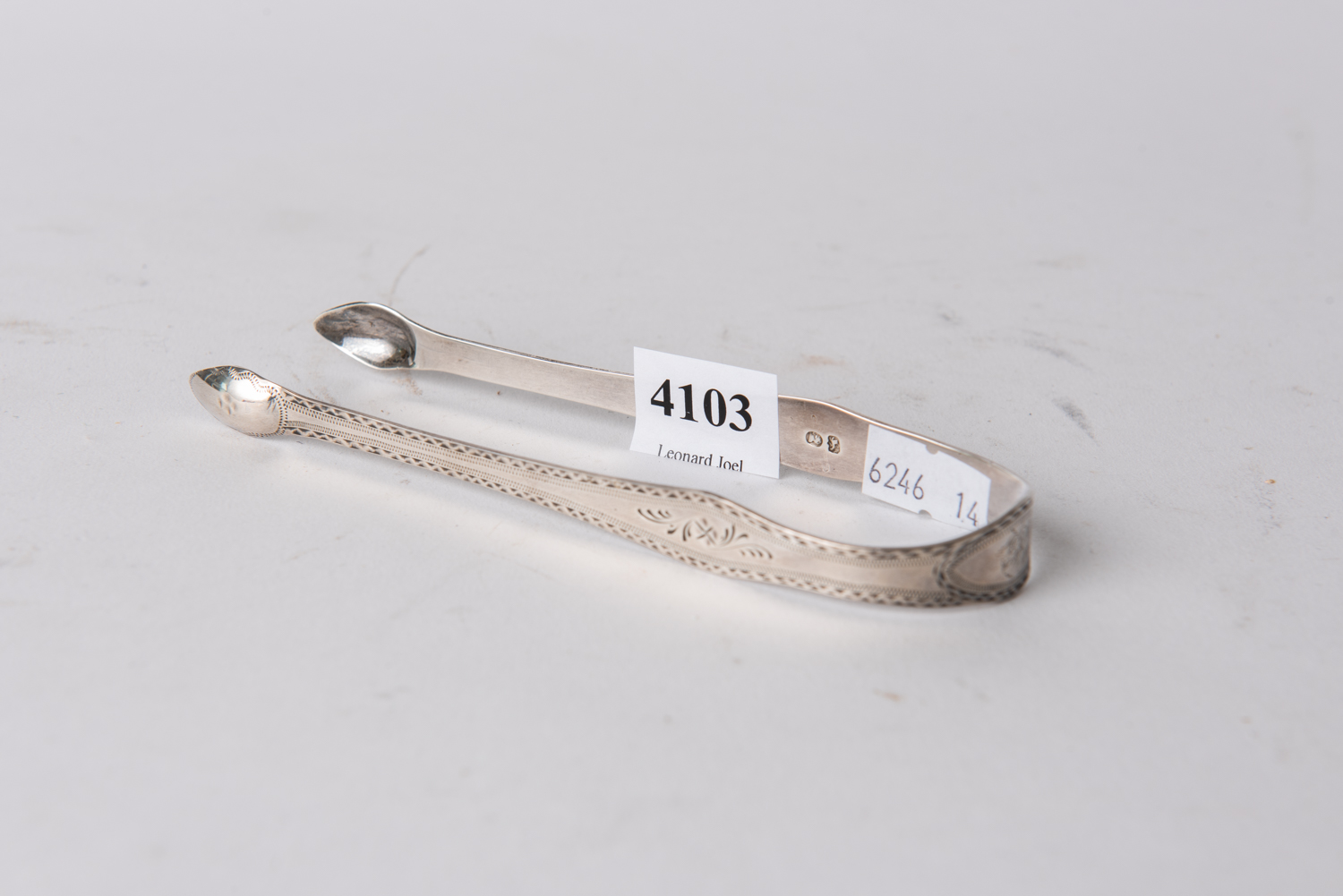 A PAIR OF GEORGIAN STERLING SILVER SUGAR TONGS, HESTER BATEMAN, LEONARD JOEL LOCAL DELIVERY SIZE: SMALL
