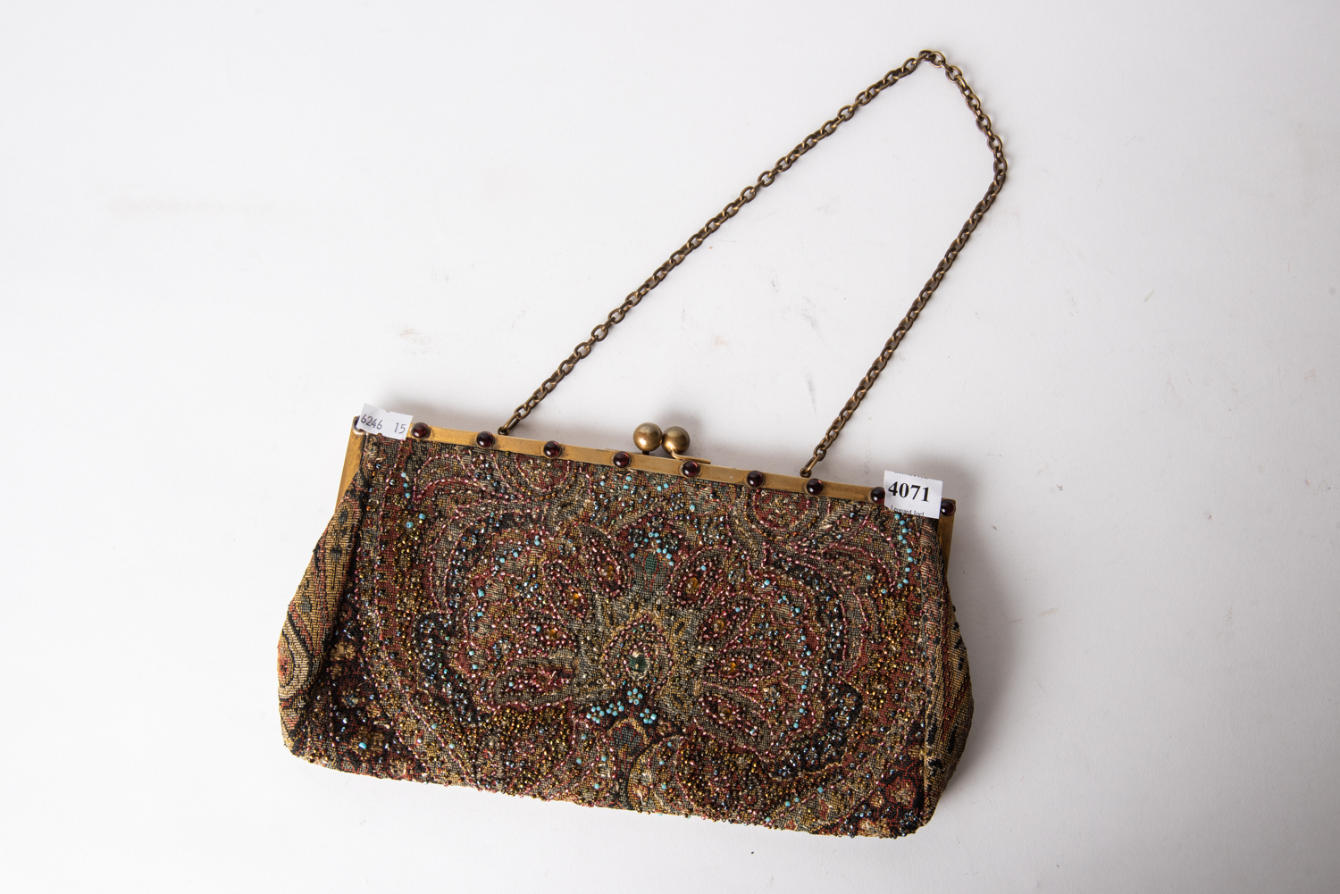 A VINTAGE NEEDLEWORK AND BEADED PURSE, LEONARD JOEL LOCAL DELIVERY SIZE: SMALL