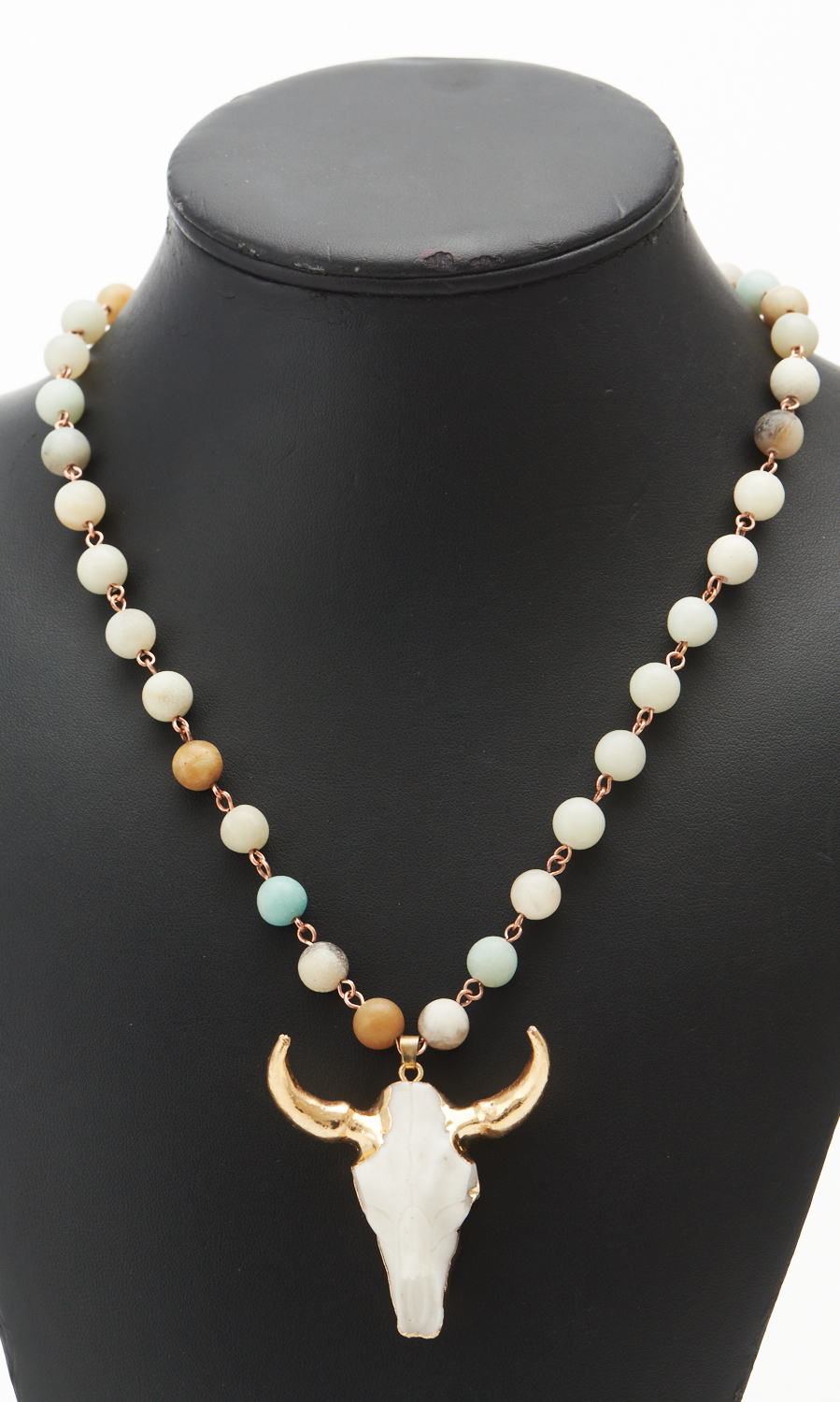 A BULL HEAD AND STONE SET BEAD NECKLACE