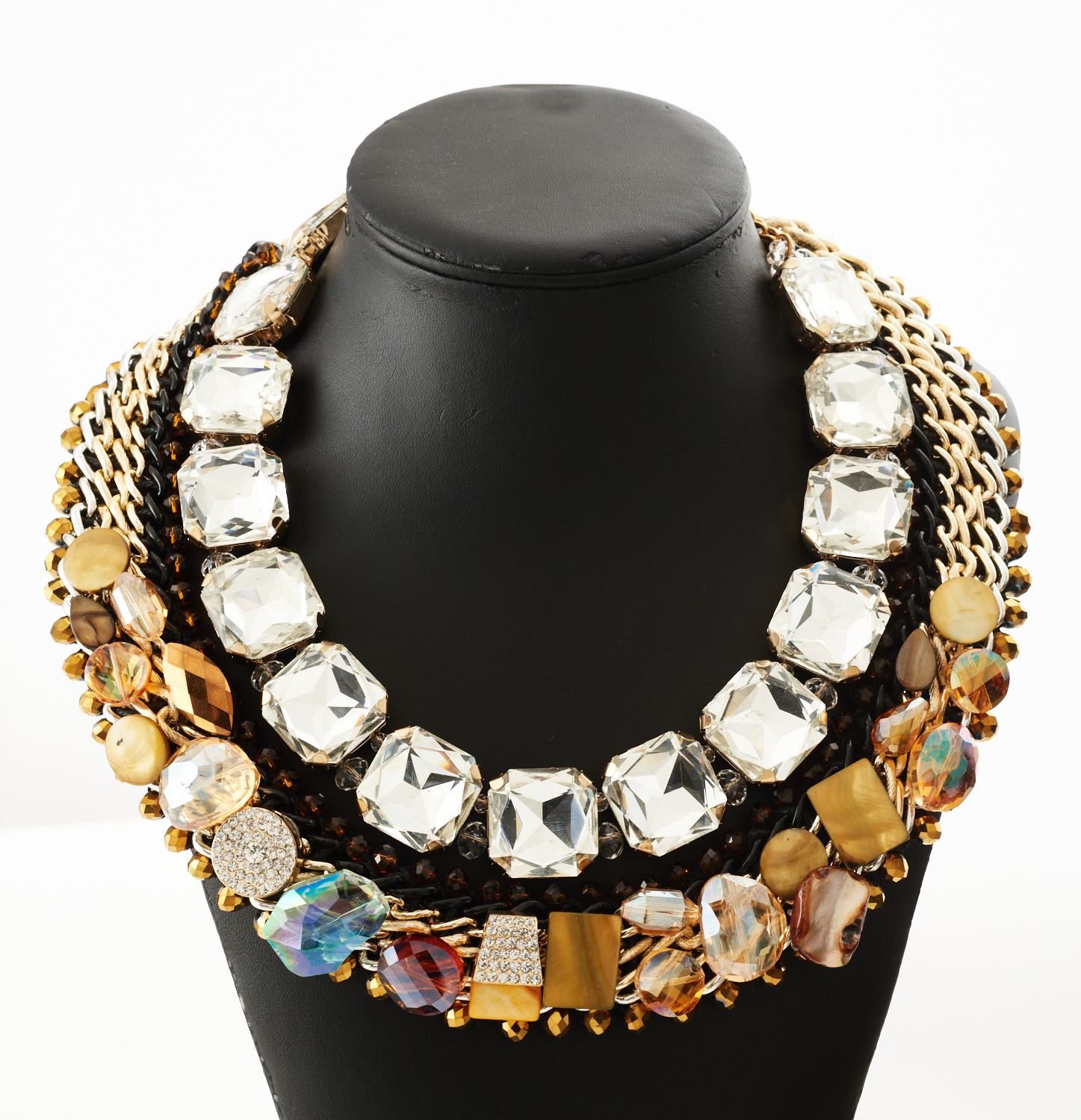 TWO PASTE COSTUME NECKLACES, ONE 50CMS WITH ADJUSTABLE EXTRA LENGTH, THE OTHER 44CMS WITH ADJUSTABLE EXTRA LINKS.