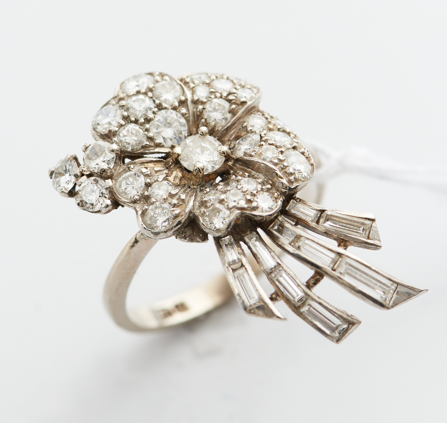 A VINTAGE DIAMOND RING IN 18CT WHITE GOLD, DIAMONDS TOTALLING APPROXIMATELY 1.60CTS, SIZE M, 6.1GMS