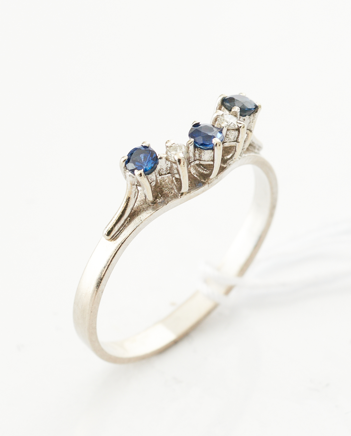 A SAPPHIRE AND DIAMOND RING IN 18CT WHITE GOLD, SIZE M, 1.9GMS