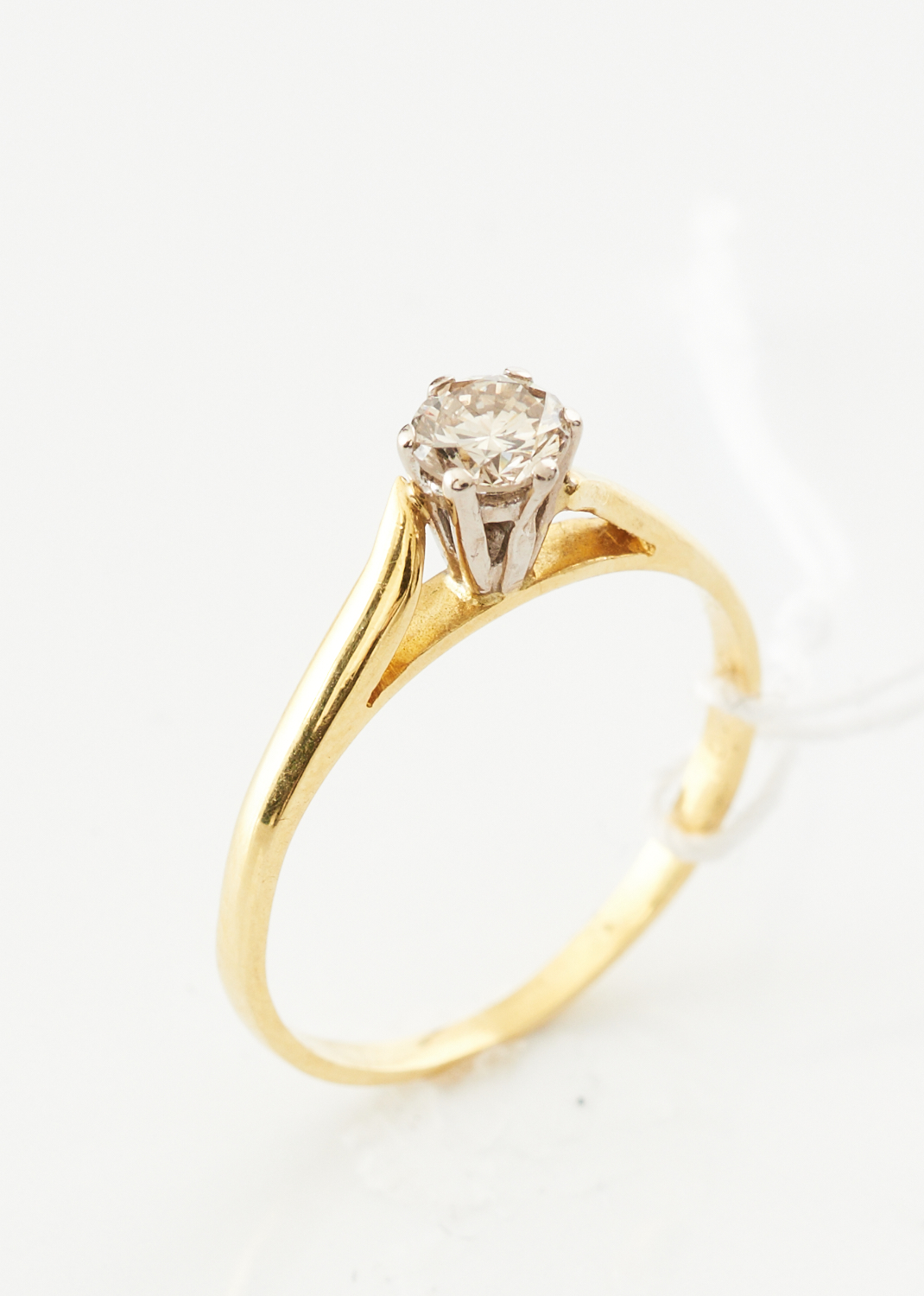 A SOLITAIRE DIAMOND RING IN 18CT GOLD, THE CENTRE STONE ESTIMATED 0.23CT, SIZE O, 2.2GMS