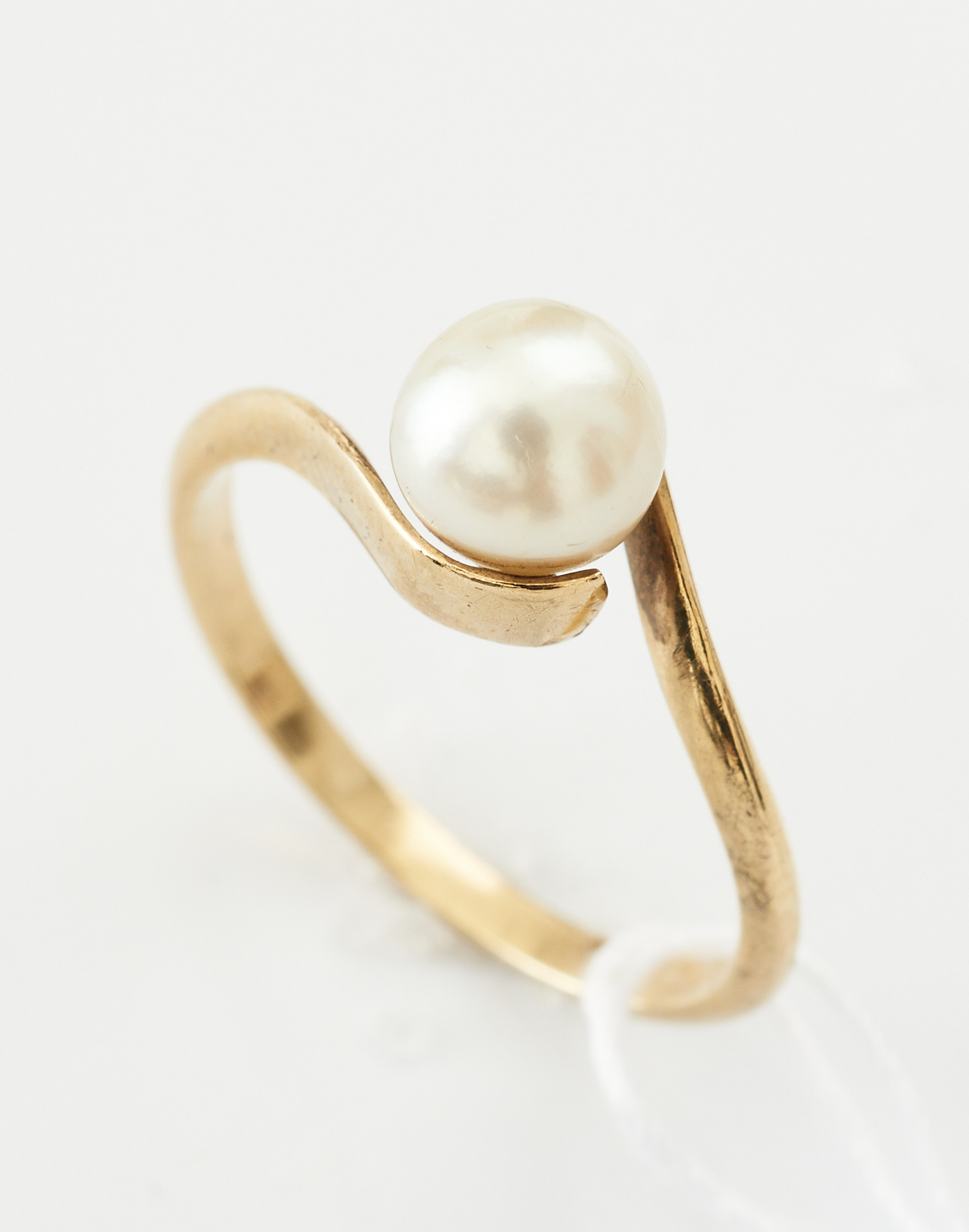 A CULTURED PEARL RING IN 9CT GOLD, SIZE M, 1.9GMS