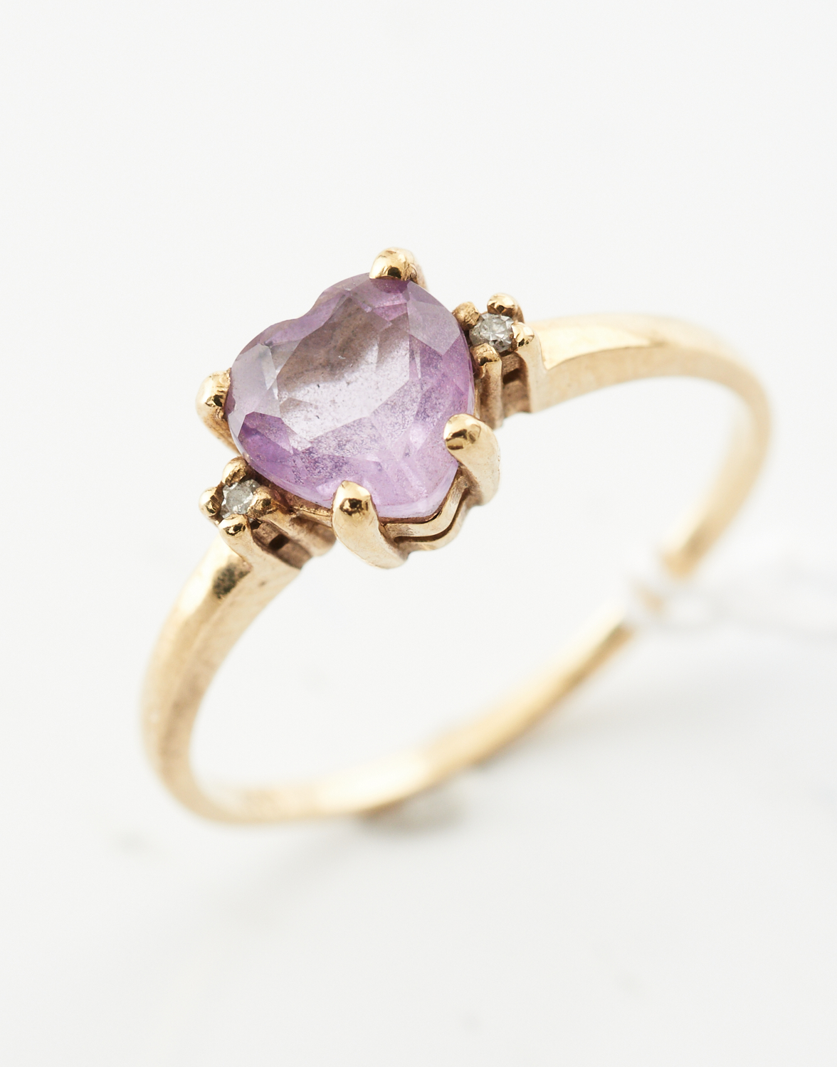 AN AMETHYST AND DIAMOND RING IN 9CT GOLD, SIZE L-M, 1.4GMS