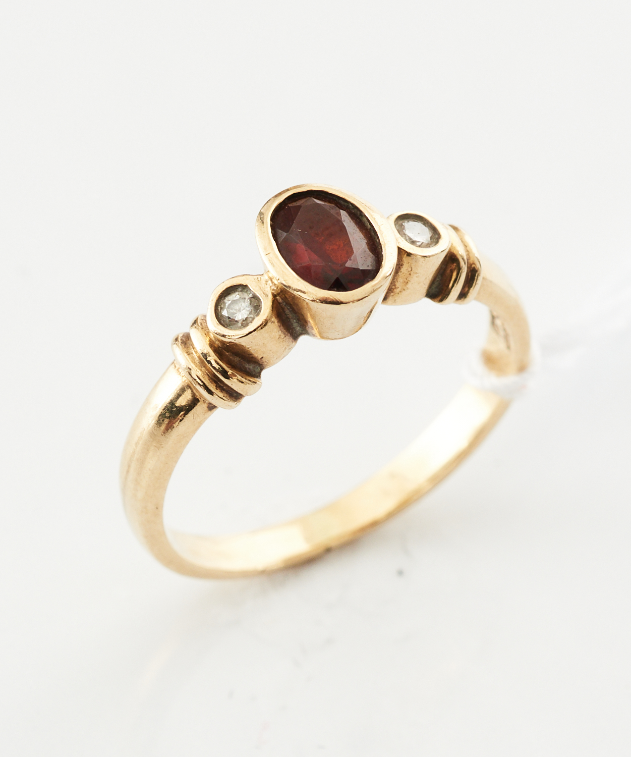 A GARNET AND DIAMOND RING IN 9CT GOLD, SIZE L, 2.3GMS
