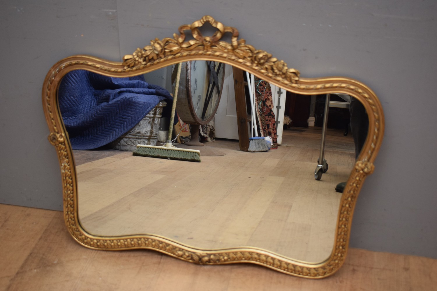 A DECORATIVE GILT FRAMED MIRROR (A/F) (H78 X W100 CM) (LEONARD JOEL DELIVERY SIZE: MEDIUM)