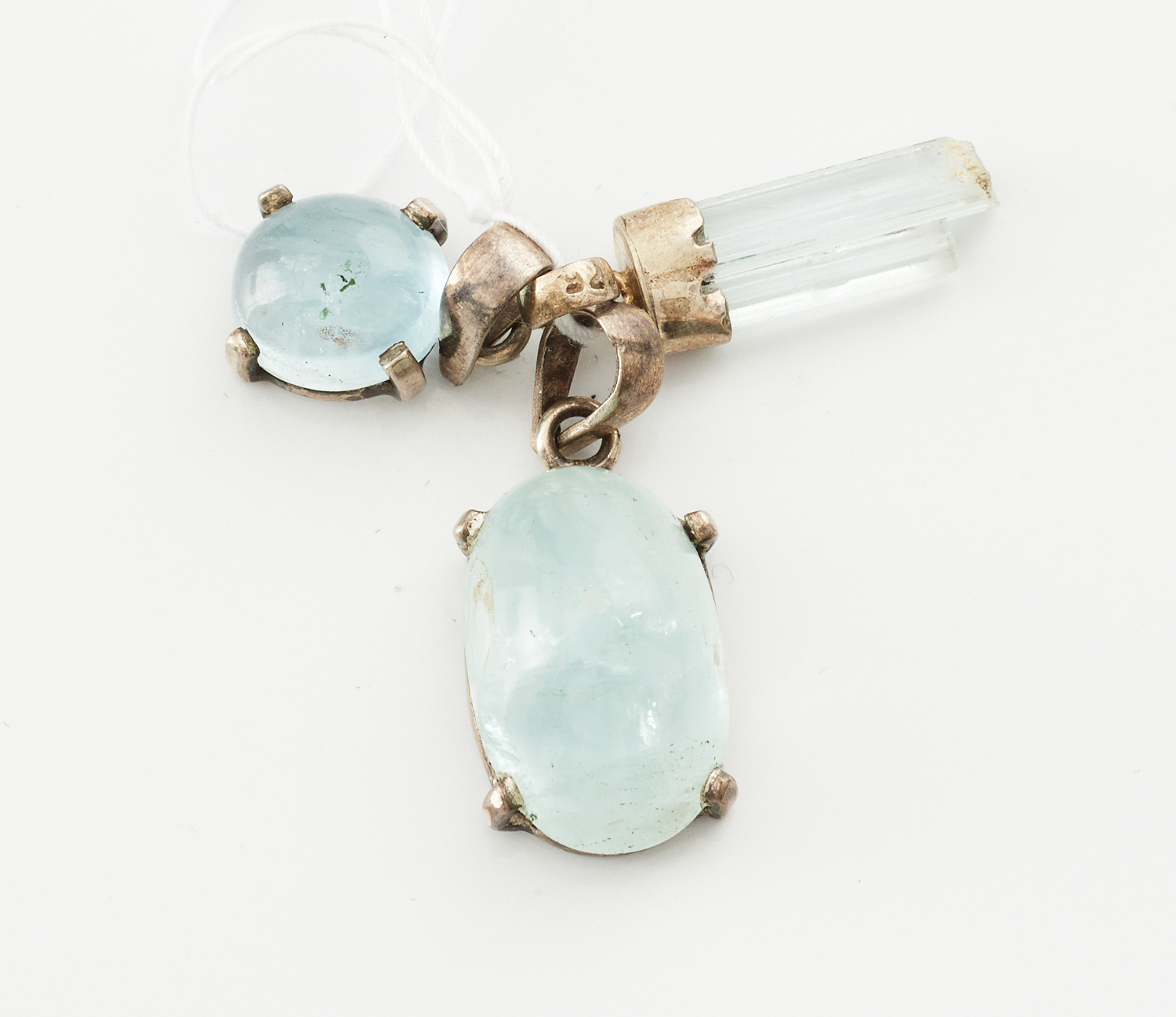 A COLLECTION OF THREE HANDCRAFTED AQUAMARINE PENDANTS IN STERLING SILVER