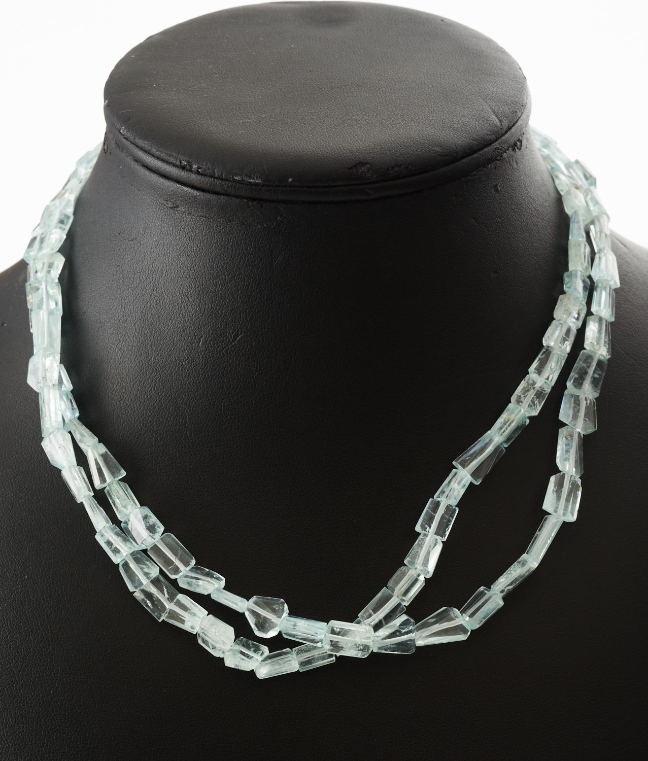 TWO HANDCRAFTED NECKLACES IN SILVER COMPRISING AQUAMARINE CRYSTAL BEADS