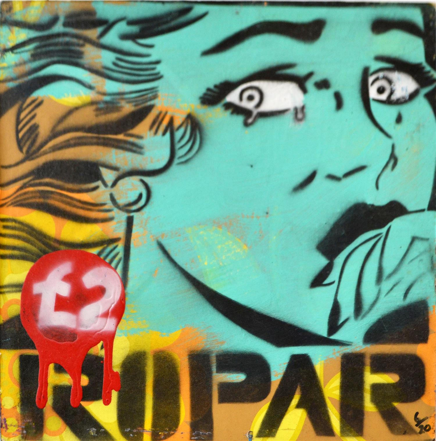 DENNIS ROPAR, UNTITLED 2003, MIXED MEDIA AND STENCIL ON BOARD ED. 6/20, 40 X 40CM, NO ADDITIONAL FRAMING, CONDITION: SURFACE IMPERFECTIONS, LEONARD JOEL DELIVERY SIZE: SMALL