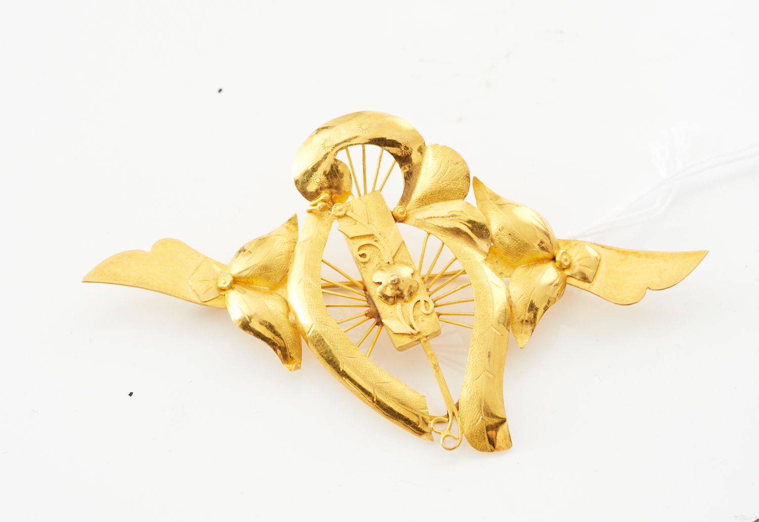 A HANDCRAFTED BROOCH IN 22CT GOLD, 6.2GMS