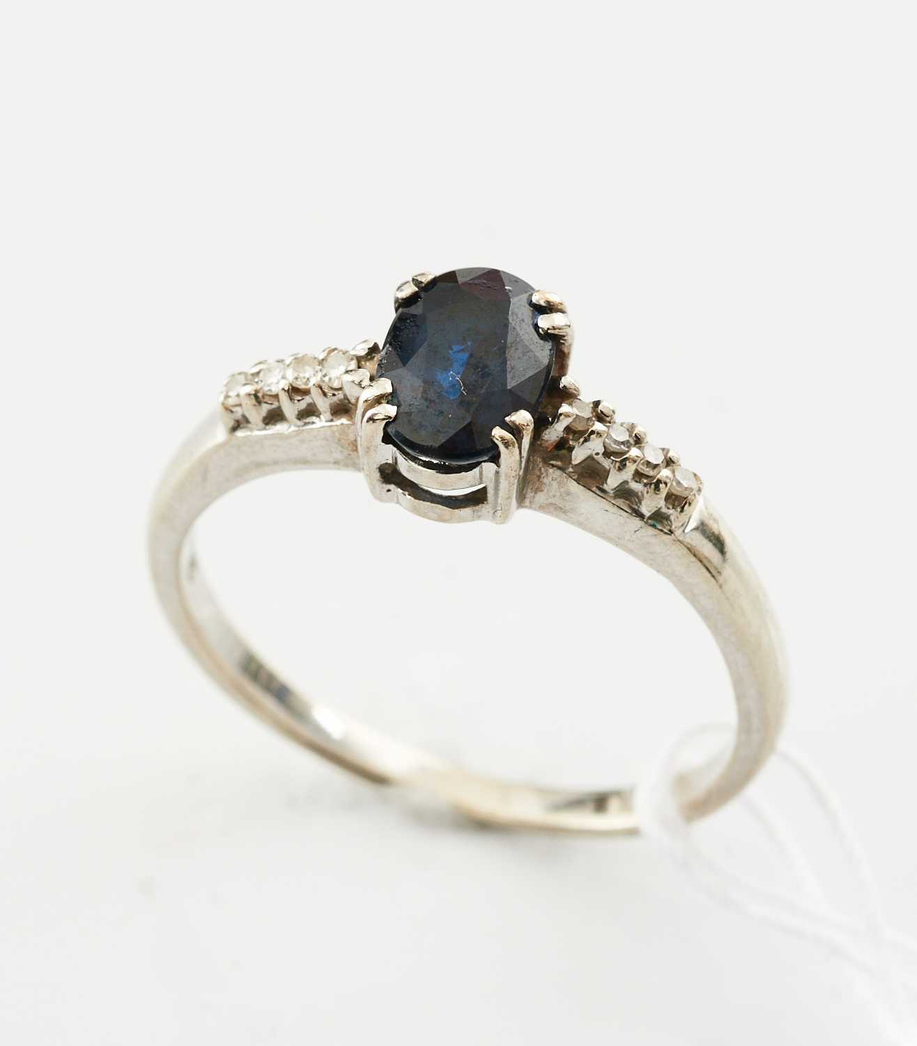 A SAPPHIRE, WEIGHING APPROXIMATELY 1.05CT, AND DIAMOND RING IN 9CT WHITE GOLD, SIZE P-Q, 2.2GMS