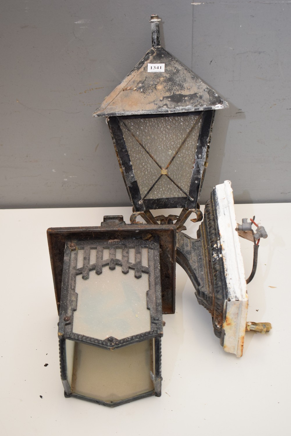TWO 1920S TUDOR REVIVAL OUTDOOR LIGHTS (A/F) (38 CM H) (LEONARD JOEL DELIVERY SIZE: SMALL)