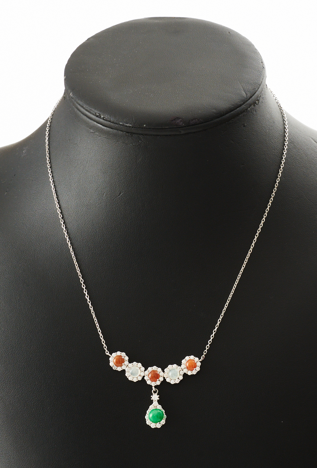 A MULTI-GEM NECKLACE FEATURING TYPE A JADE PENDANT IN SILVER