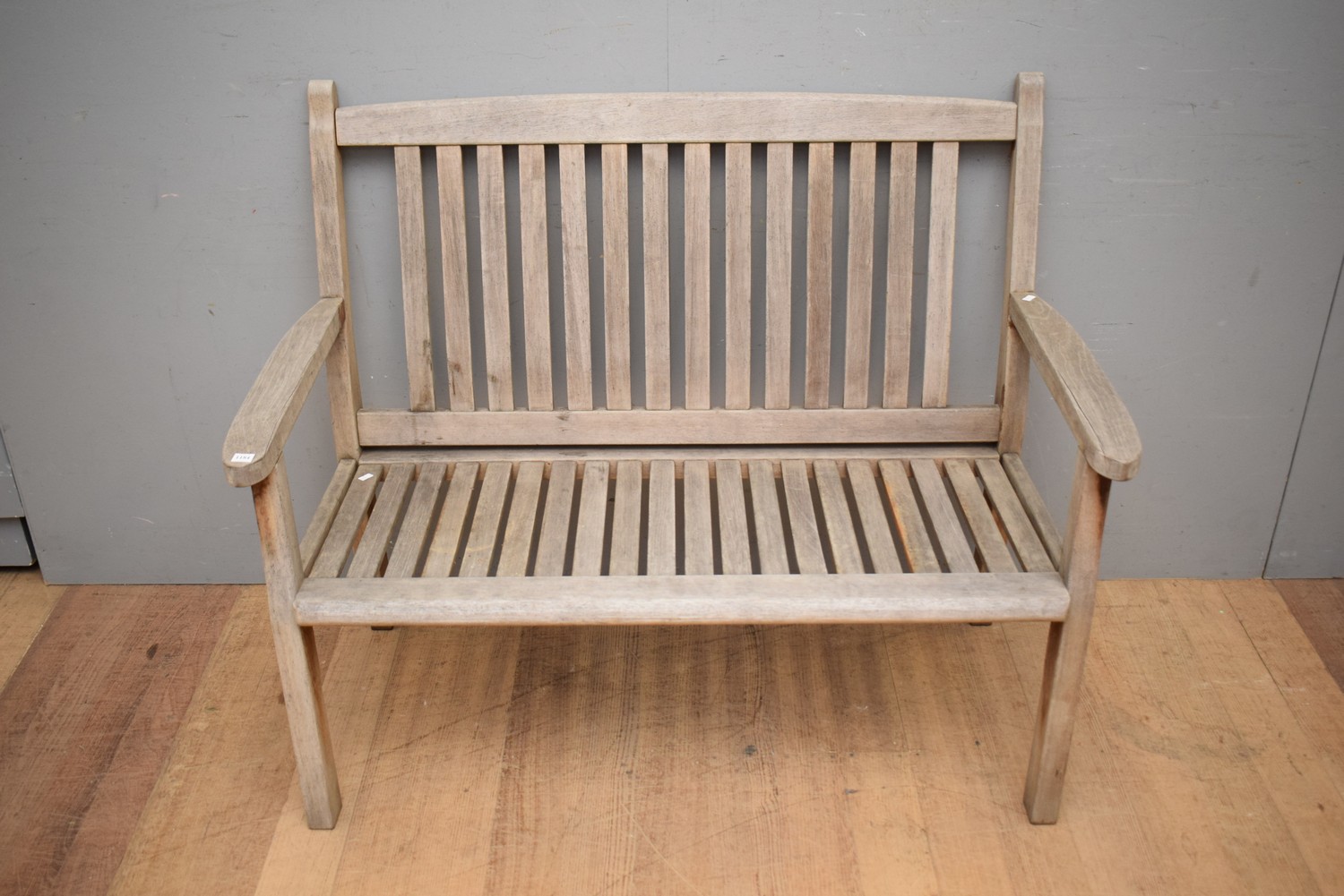 A TWO SEATER TEAK GARDEN BENCH ( 96H X 117W X 65D CM) (LEONARD JOEL DELIVERY SIZE: LARGE)