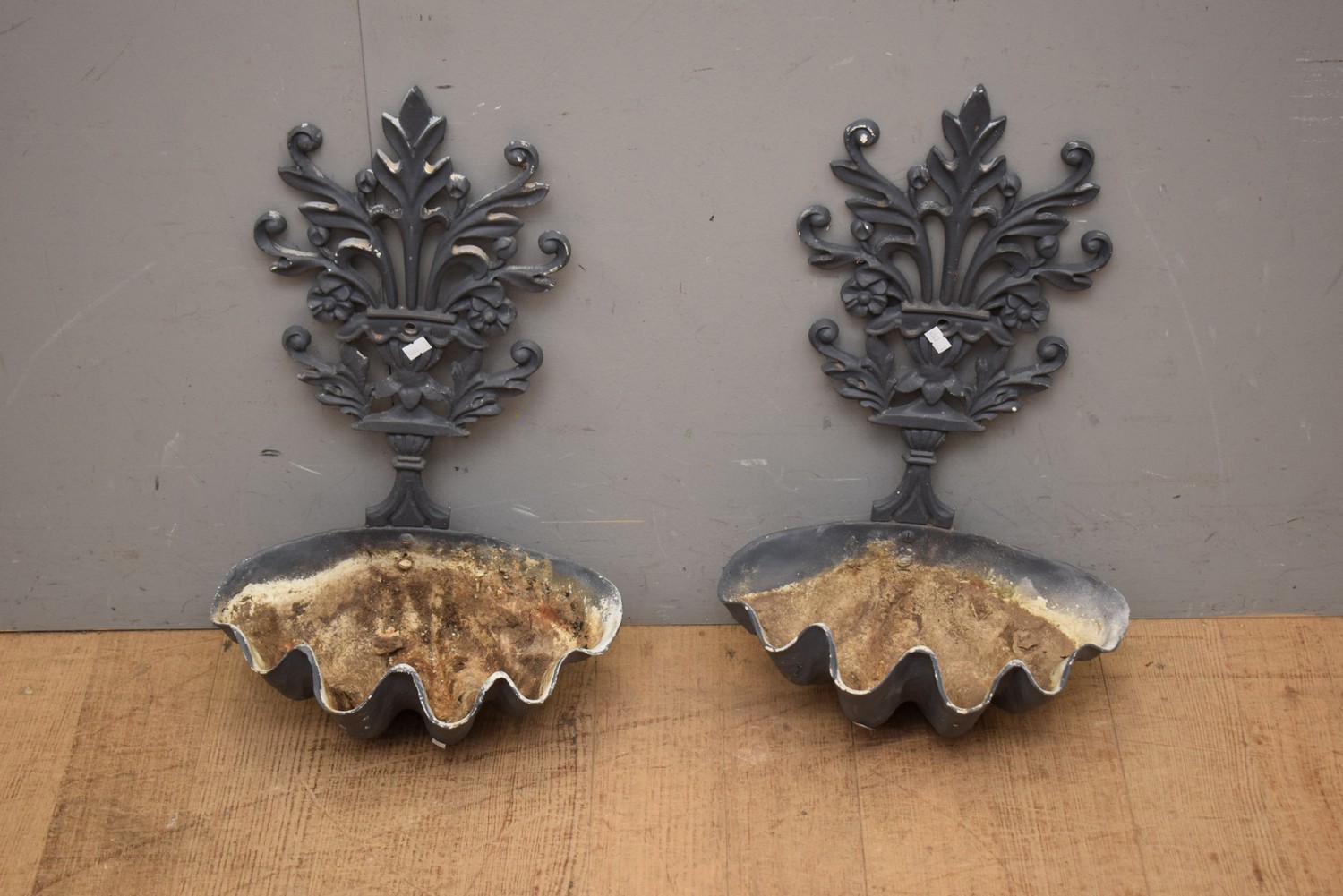 TWO WALL MOUNTED METAL PLANTERS ( 54H X 33W CM) (LEONARD JOEL DELIVERY SIZE: SMALL)