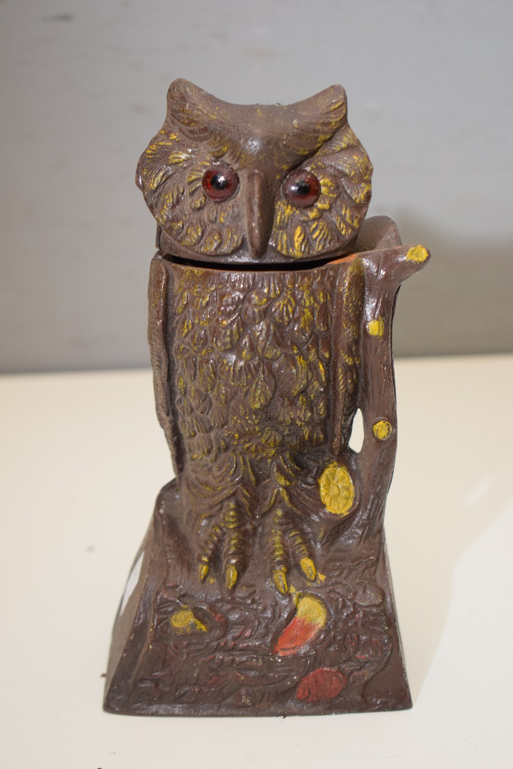 A METAL OWL WITH TURNABLE HEAD (21 CM H) (LEONARD JOEL DELIVERY SIZE: SMALL)