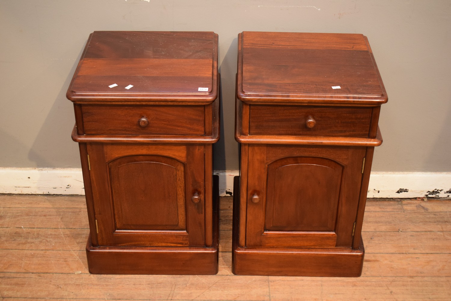 A PAIR OF MAHOGANY VICTORIAN STYLE BEDSIDE CABINETS (66H X 40W X 40D CM) (LEONARD JOEL DELIVERY SIZE: MEDIUM)