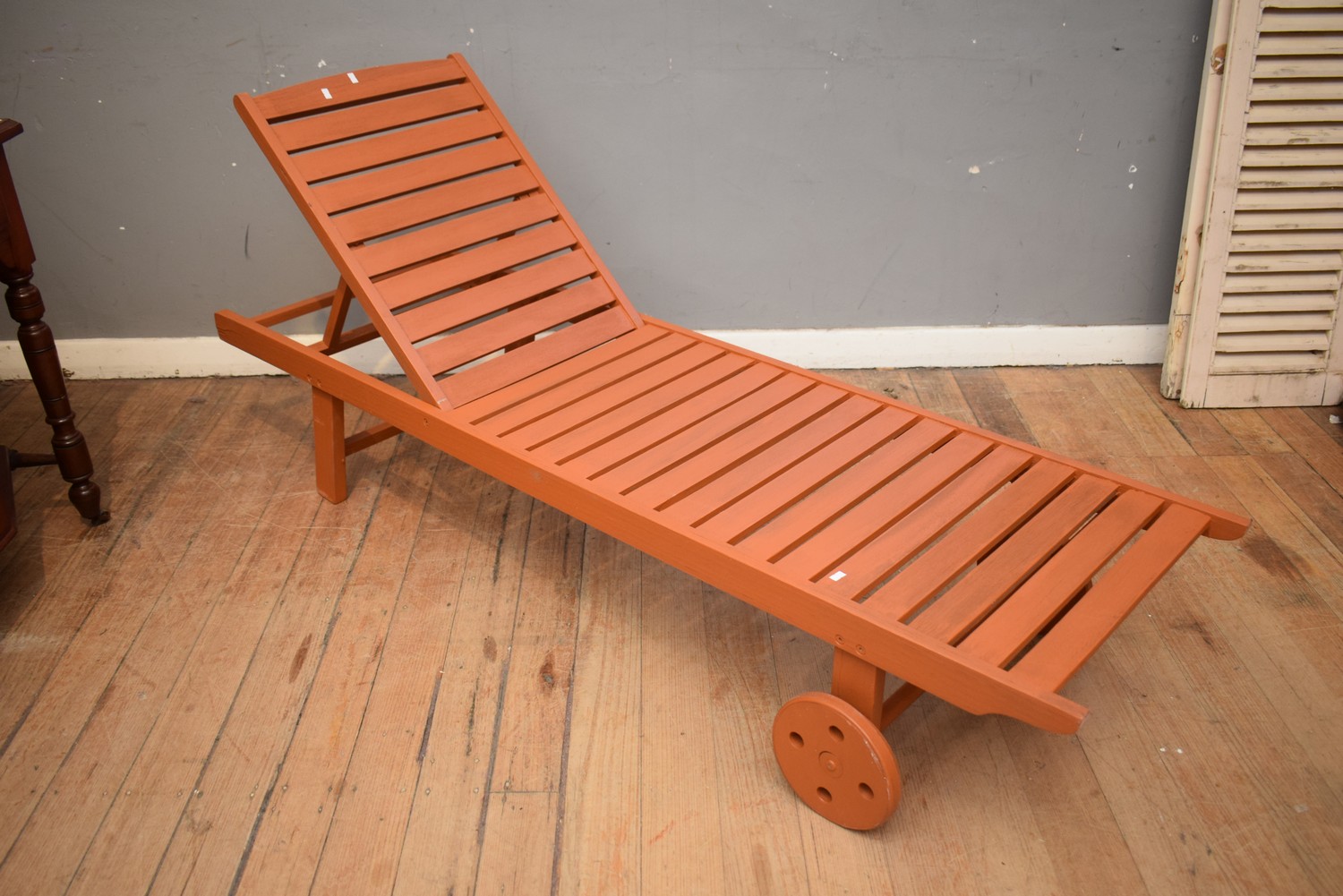 A PAINTED TIMBER OUTDOOR SUN LOUNGE (80H x 55W x 185D CM) (PLEASE NOTE THIS HEAVY ITEM MUST BE REMOVED BY CARRIERS AT THE CUSTOMER'S EXPENSE. LEONARD JOEL STAFF CANNOT ASSIST CARRYING THIS ITEM) (X-LARGE ITEM)
