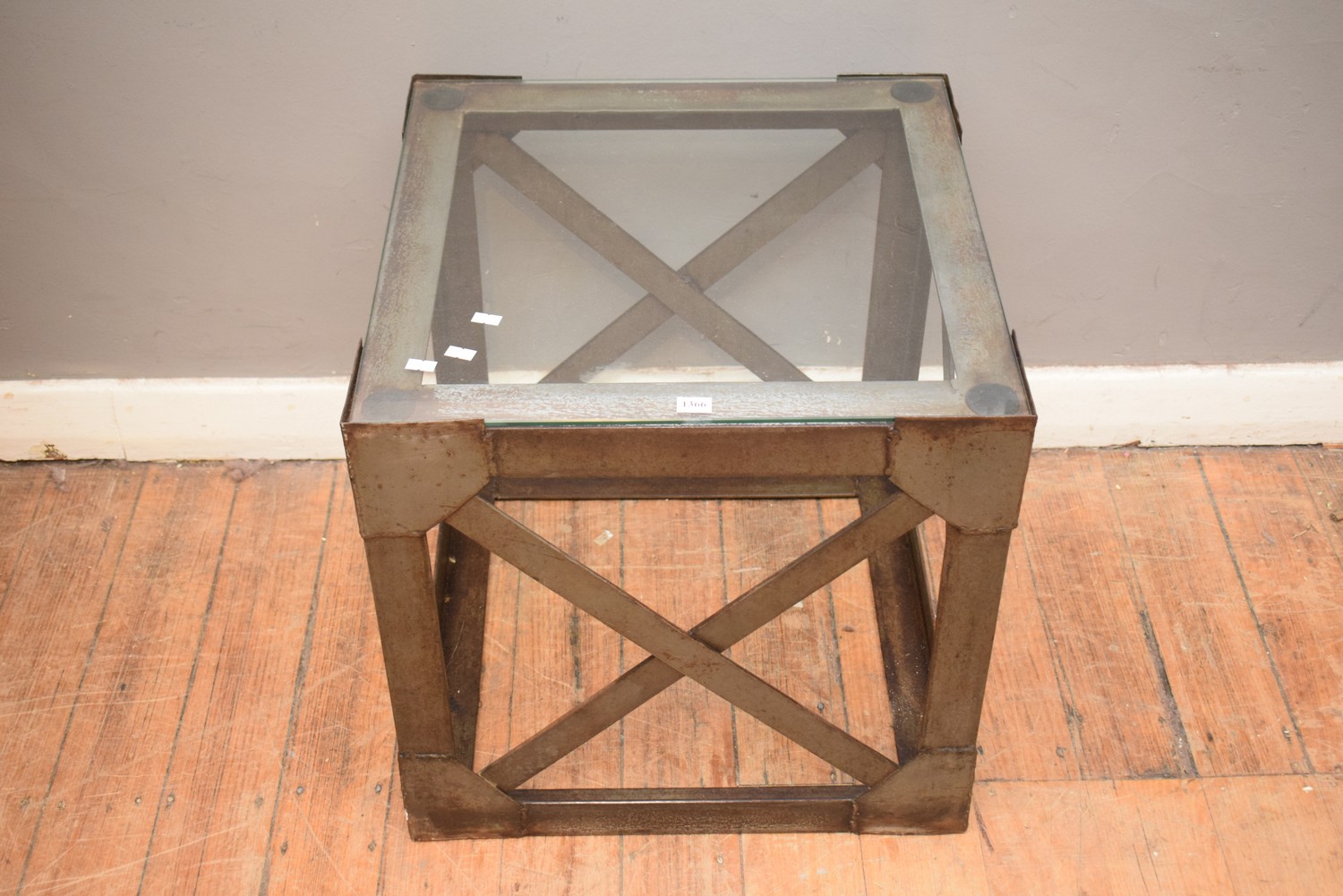 A CONTEMPORARY STEEL AND GLASS SIDE TABLE (50H x 50W x 50D CM) (LEONARD JOEL DELIVERY SIZE: MEDIUM)