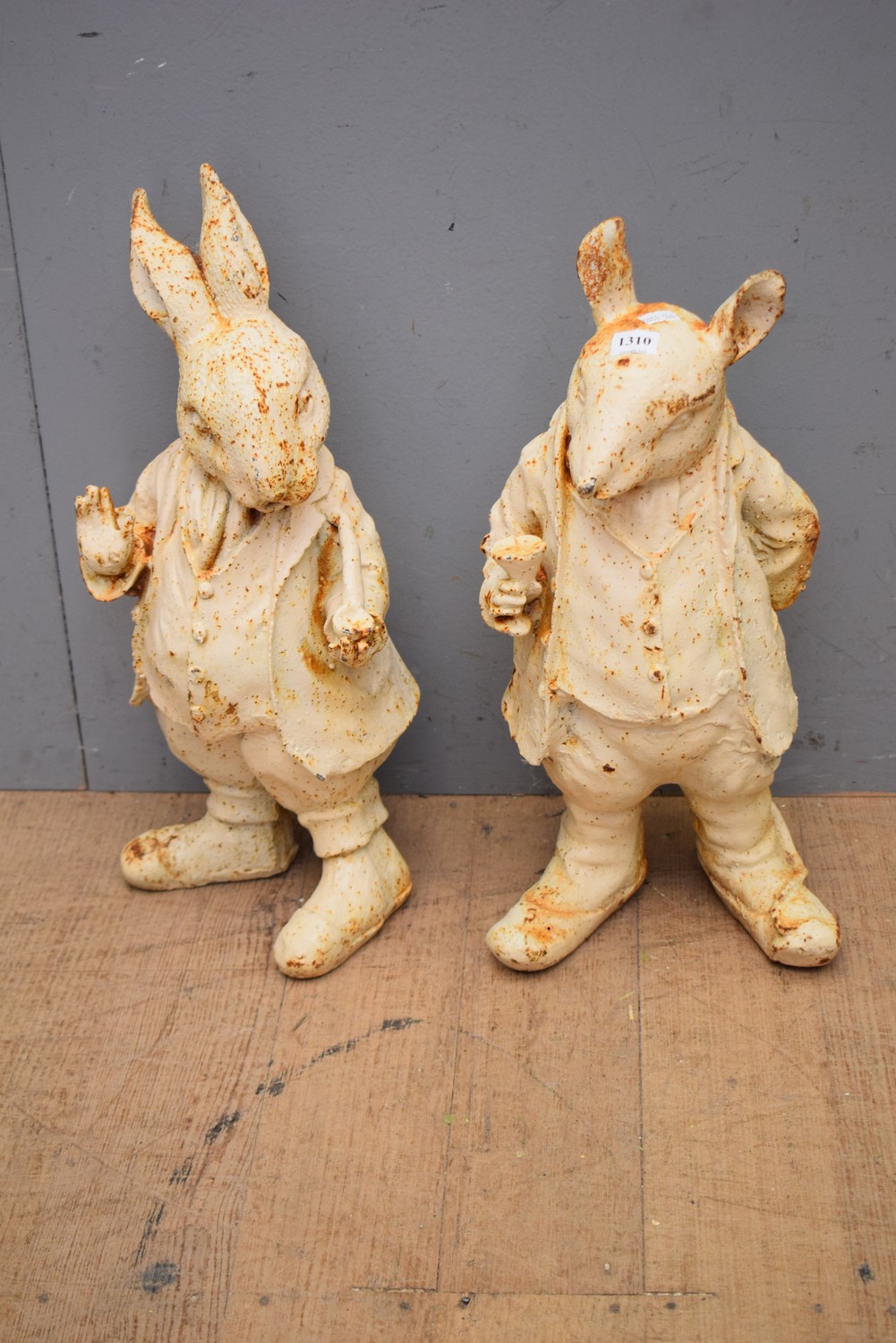 A PAIR OF CAST IRON ANIMALS (RABBIT 48 CM H) (LEONARD JOEL DELIVERY SIZE: SMALL)