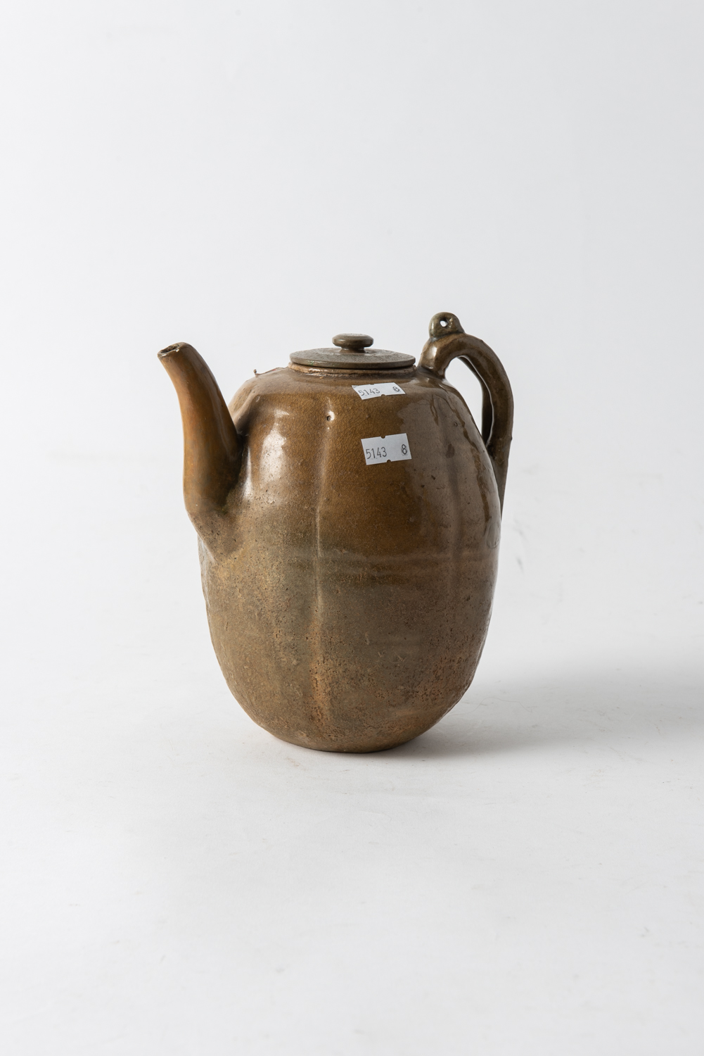 A KOREAN GLAZED POTTERY POT (REPLACED LID), H.21CM, LEONARD JOEL LOCAL DELIVERY SIZE: SMALL
