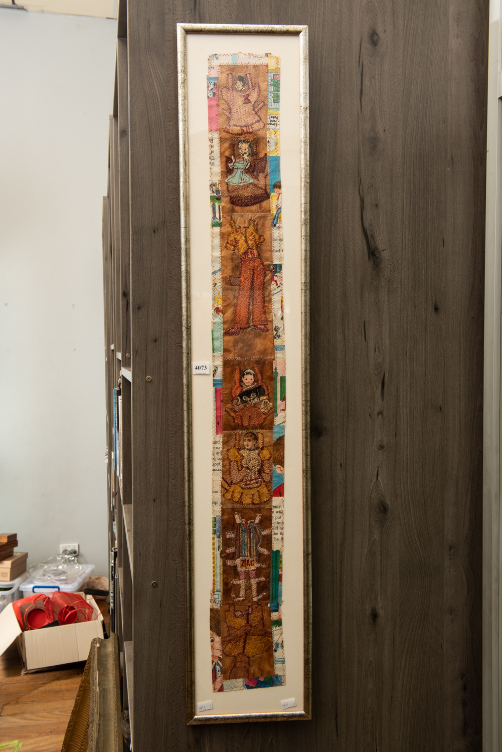 A STITCHED AND COLLAGED CHILDREN'S PICTURE, 105 X 20 CM, LEONARD JOEL LOCAL DELIVERY SIZE: SMALL