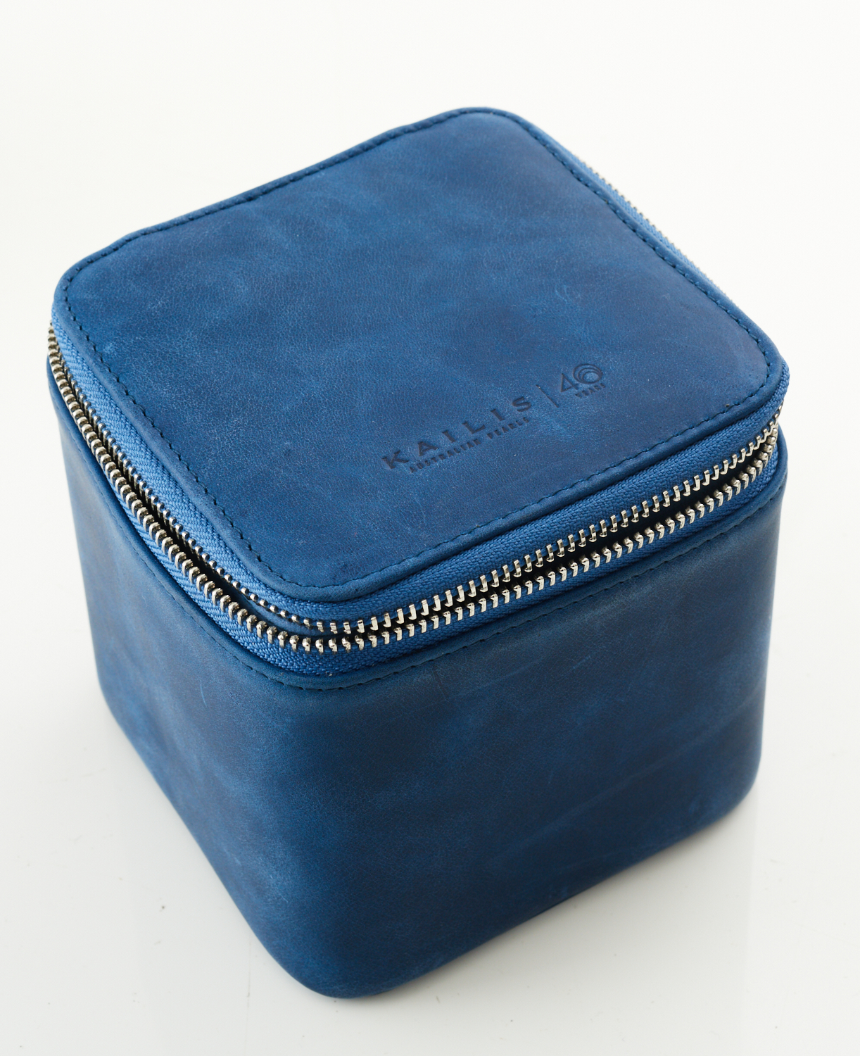 A BLUE LEATHERETTE JEWELLERY BOX BY KAILIS