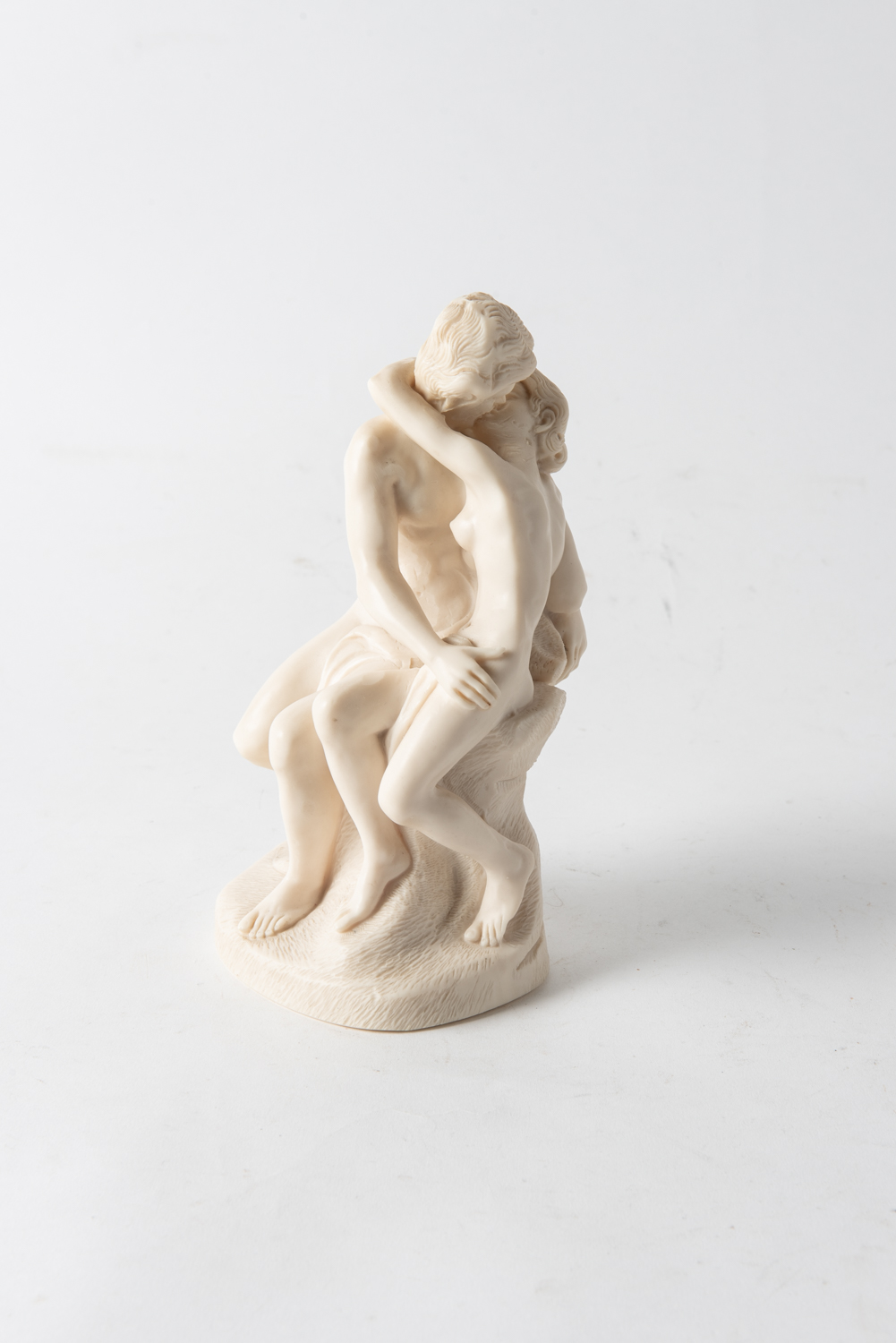 A COMPOSITE ORNAMENT, THE KISS, AFTER RODIN, H.21CM, LEONARD JOEL LOCAL DELIVERY SIZE: SMALL