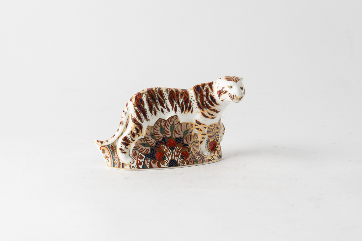 A ROYAL CROWN DERBY PAPERWEIGHT, 'BENGAL TIGER', 13 CM HIGH, LEONARD JOEL LOCAL DELIVERY SIZE: SMALL