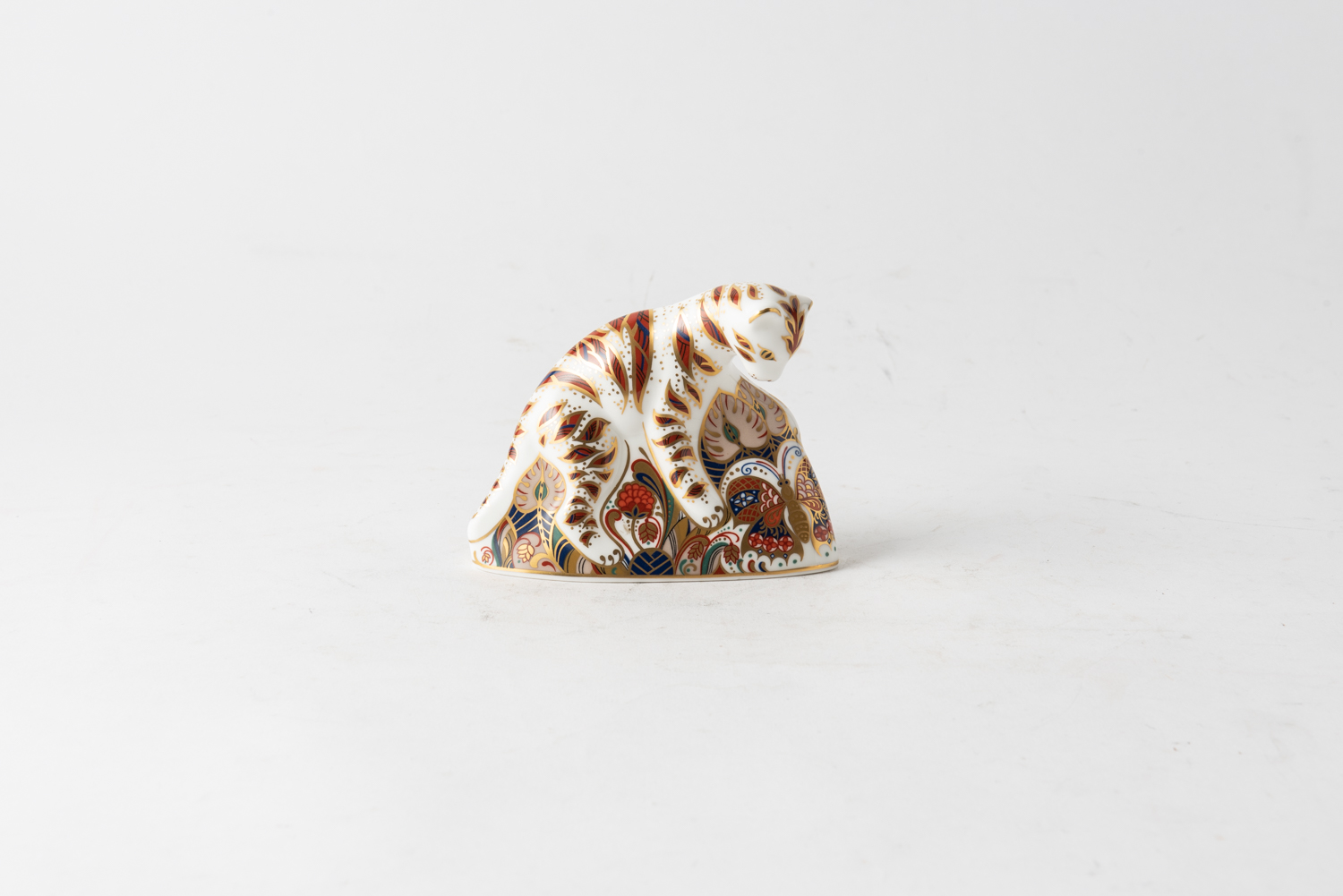A SMALL ROYAL CROWN DERBY PAPERWEIGHT, 'BENGAL TIGER CUB', 10 CM HIGH, LEONARD JOEL LOCAL DELIVERY SIZE: SMALL