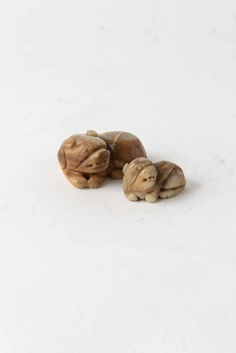 TWO HARDSTONE CARVINGS OF LION MOTHER AND PUP, LARGEST W.7CM, LEONARD JOEL LOCAL DELIVERY SIZE: SMALL