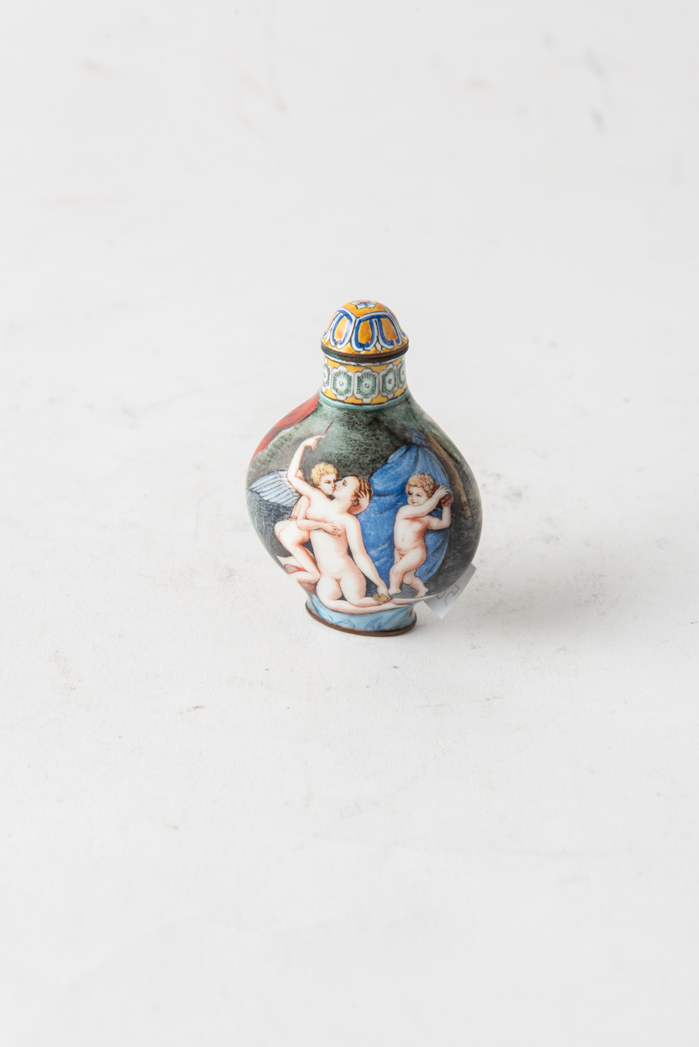 A 20TH CENTURY ENAMEL ON COPPER SNUFF BOTTLE, LEONARD JOEL LOCAL DELIVERY SIZE: SMALL