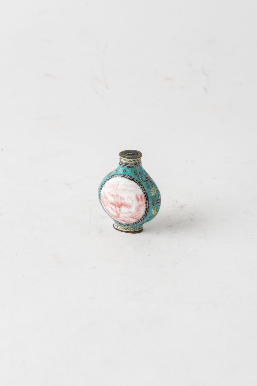 ENAMEL ON COPPER SNUFF BOTTLER (NO STOPPER), LEONARD JOEL LOCAL DELIVERY SIZE: SMALL