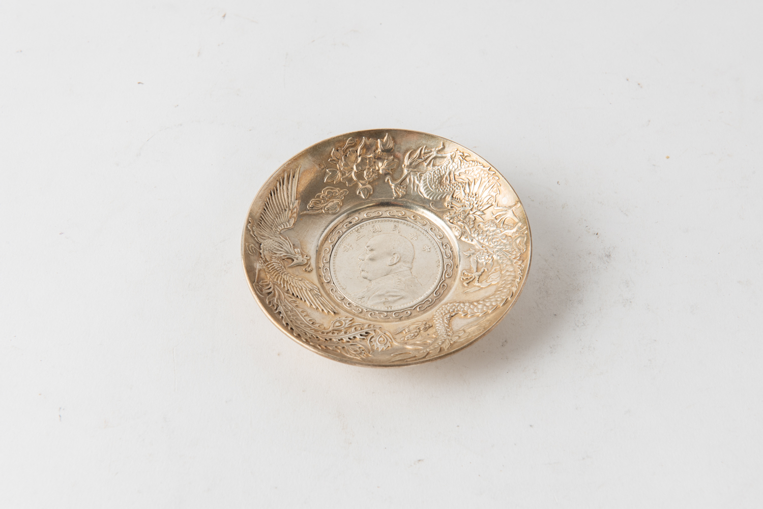 A CHINESE SILVER COIN DISH, DIA.10CM, LEONARD JOEL LOCAL DELIVERY SIZE: SMALL