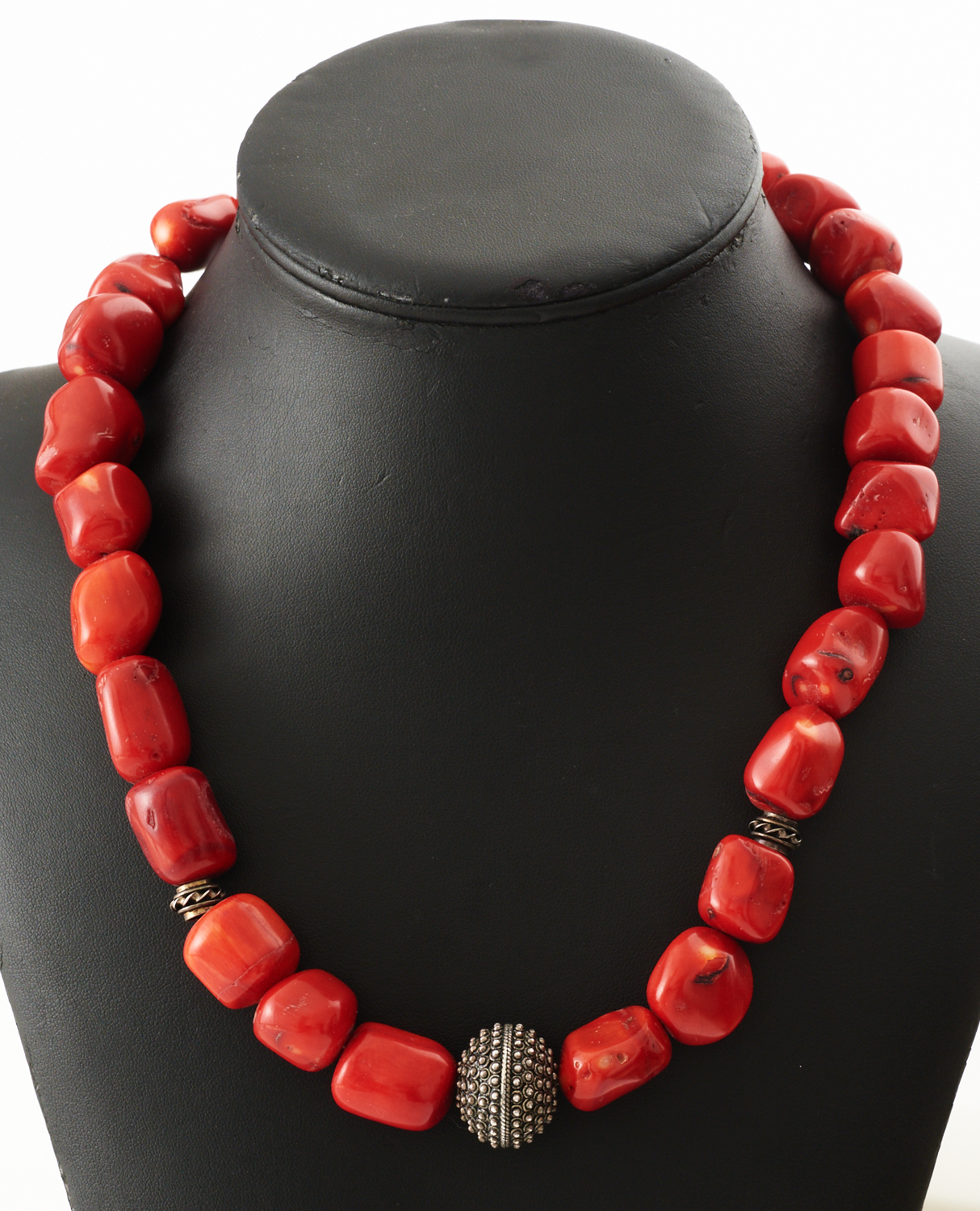 A VINTAGE CORAL BEAD NECKLACE, 54CMS