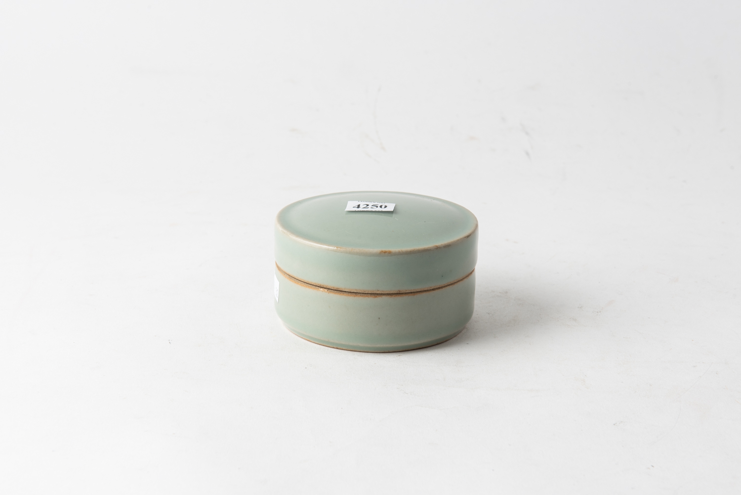 A CHINESE CELADON LIDDED BOX, 11 CM DIAMETER, LEONARD JOEL LOCAL DELIVERY SIZE: SMALL