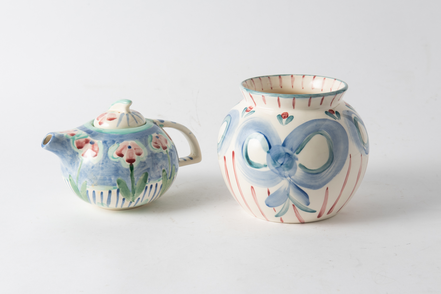 A SARAH BUCKLEY HAPPY DAYS BOWL AND TEAPOT, LEONARD JOEL LOCAL DELIVERY SIZE: SMALL