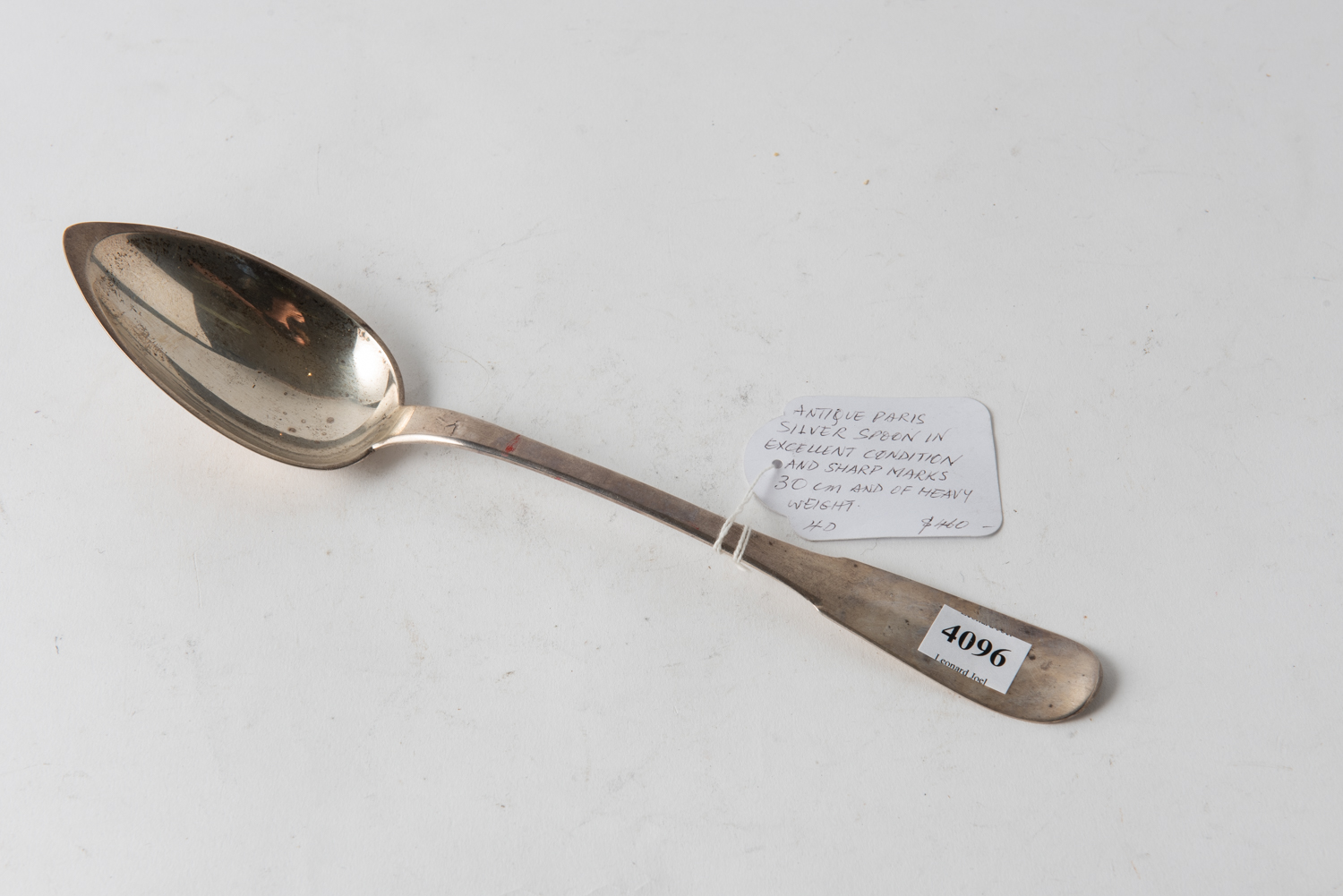 A FRENCH SILVER BASTING SPOON, LEONARD JOEL LOCAL DELIVERY SIZE: SMALL, LEONARD JOEL LOCAL DELIVERY SIZE: SMALL
