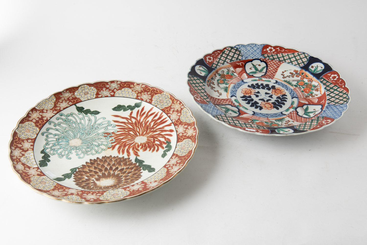 TWO JAPANESE POTTERY CHARGERS (ONE WITH A HAIRLINE), LEONARD JOEL LOCAL DELIVERY SIZE: SMALL