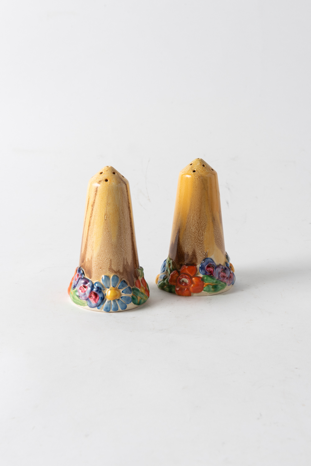 A PAIR OF CLARICE CLIFF 'MY GARDEN' CRUETS, H.15CM, LEONARD JOEL LOCAL DELIVERY SIZE: SMALL