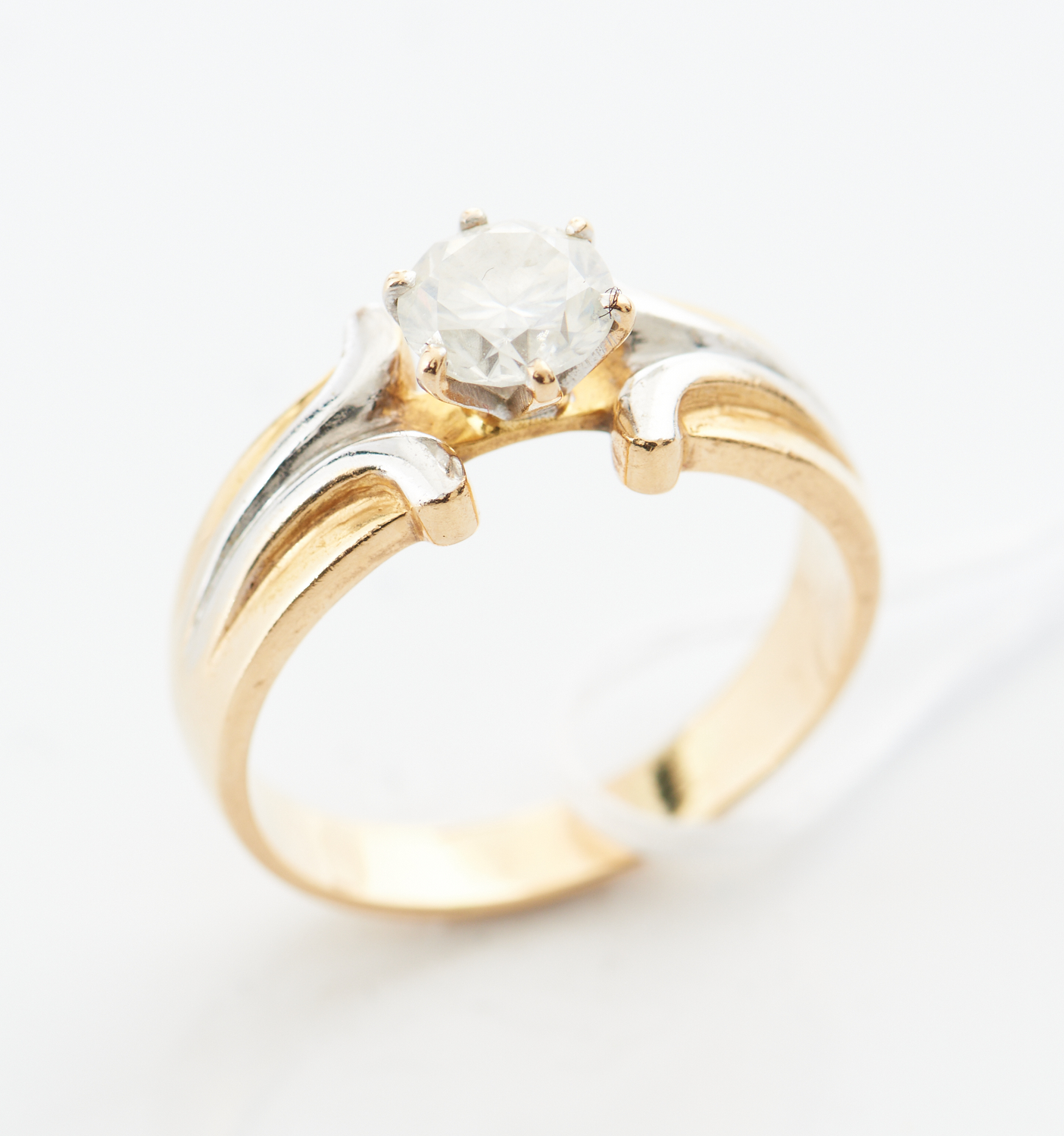 A MOISSANITE RING IN 14CT GOLD, SIZE T, 7.5GMS